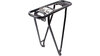 Sehr stabiler Gepäckträger für den Einsatz bei City-/ Trekking- und Touren-Bikes, mit Edelstahl-Federklappe, mit Edelstahl-Befestigungsschrauben, Aluminium-Druckgussfüße, vordere Befestigung durch Kunststoffkappe abgedeckt, ohne Pumpenhalter, mit Reflektorhalter, Tragfähigkeit 27 kg, ISO 11243, schwarz