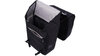 Doppeltasche aus wasserabweisendem Polyester mit reflektierenden Elementen, mit großem Hauptfach und kleinerem Innenfach, inkl. Reißverschlussfach am Deckel, mit vormontiertem Racktime Snap-it Adapter